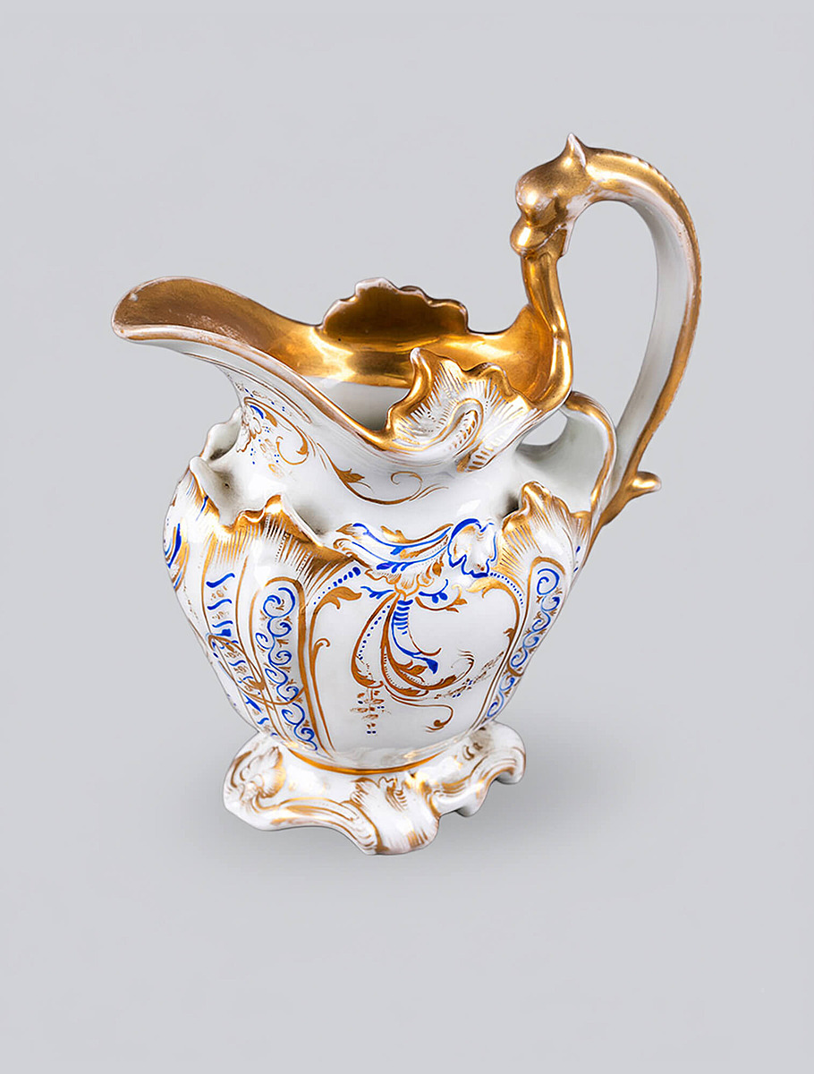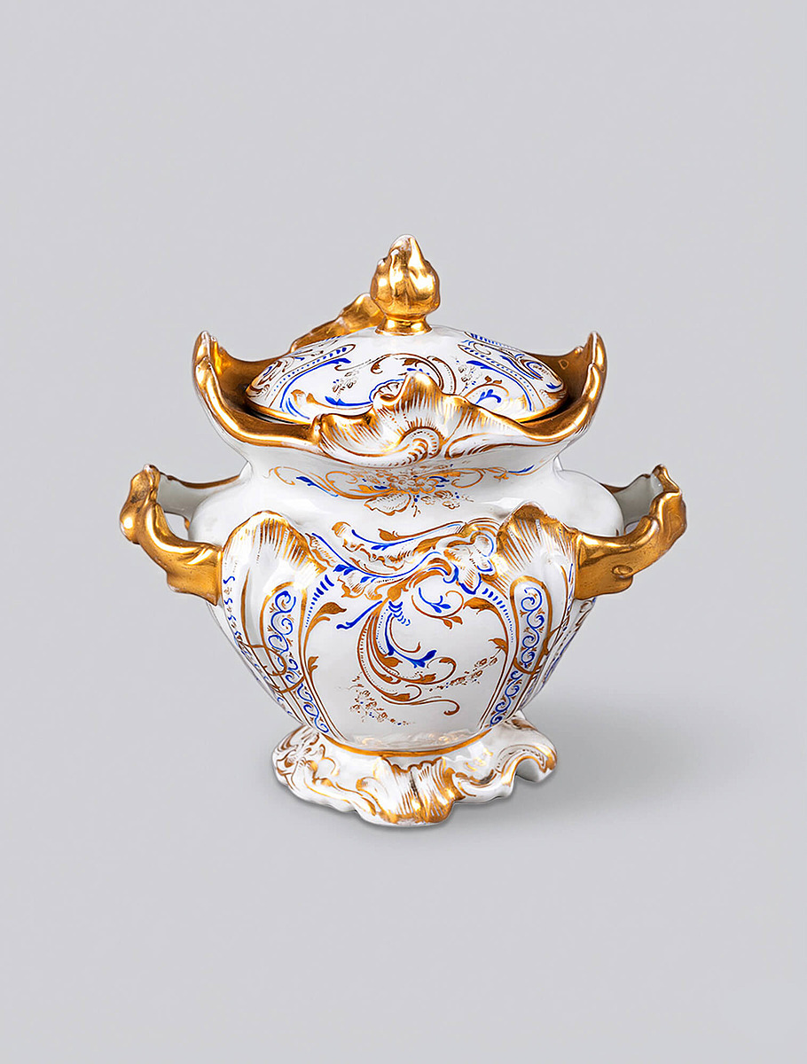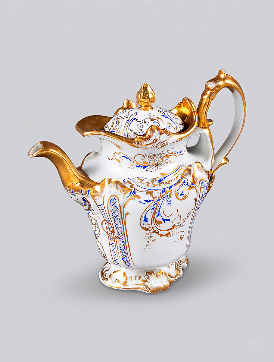 Дулёво стало крупнейшим центром массового фарфора в России. Здесь производили миллионы предметов — от простых столовых сервизов до более декоративных изделий с богатой позолотой. Формы были массивными, устойчивыми, рассчитанными на активное использование. Это был фарфор для повседневной жизни — для городских семей, трактиров, лавок, купеческих домов.