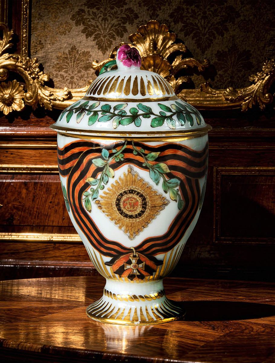 Интерес к фарфору в России появился во многом благодаря Петру I. Во время поездок по Европе он видел дворцы с «китайскими кабинетами» и интерьерами, в которых фарфор выставляли как произведение искусства.