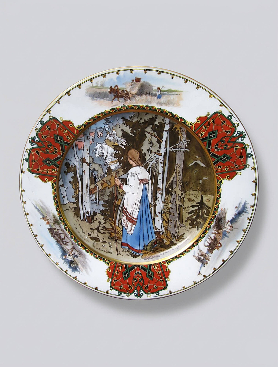 Также завод сотрудничал с художником Иваном Билибиным. Его иллюстрации к русским народным сказкам — с декоративной рамкой и стилизацией под древнерусскую миниатюру — легли в основу серии тарелок, появившейся около 1900 года.