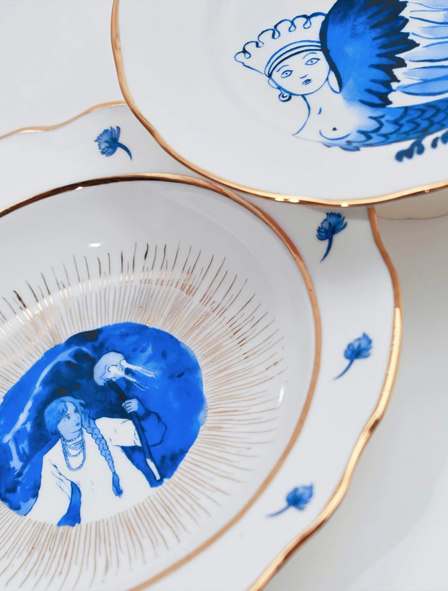 Ещё один проект лаборатории — коллекция «Быль-Небыль» дизайнера Анны Михайловой. В ней графика Ивана Билибина перенесена на фарфор: на тарелках появляются птица Сирин и Василиса Прекрасная. Сказочные образы сохранены в традиционной сине-белой гамме, но поданы в современной интерпретации — как символы внутренней силы и устойчивости.