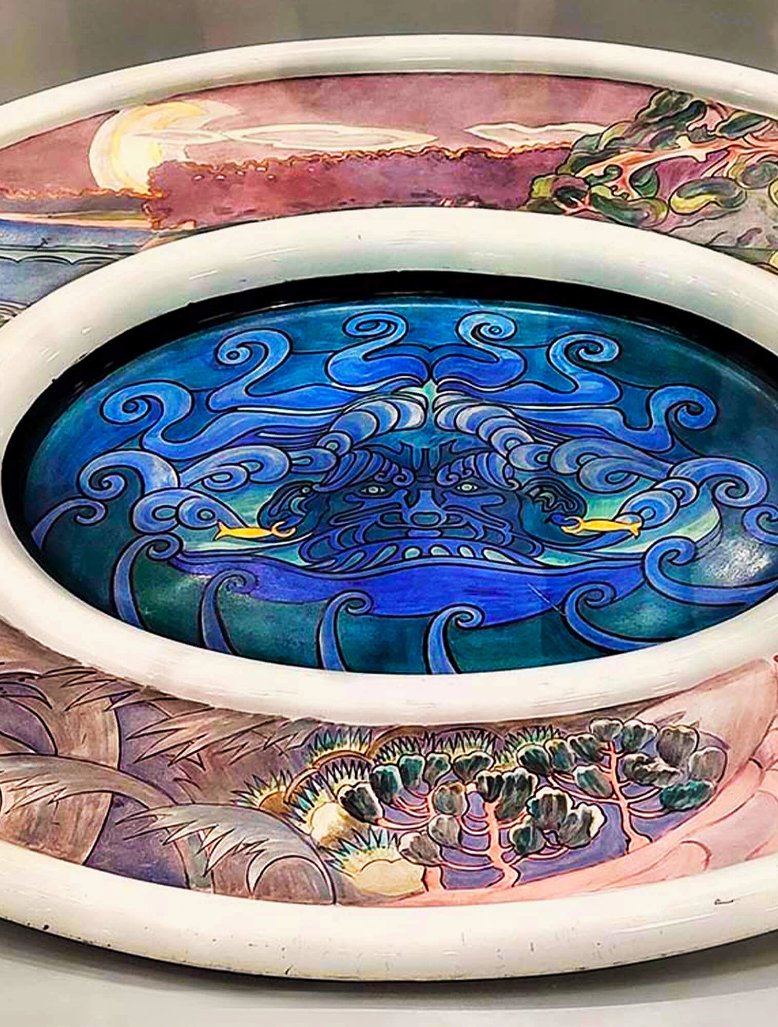 Помимо цветочных и военных мотивов были популярны росписи с пейзажами, мифологическими сценами, зарисовками из крестьянской жизни.