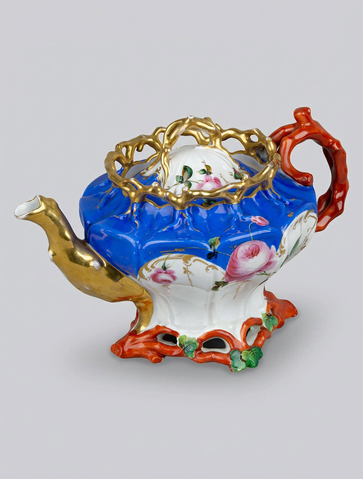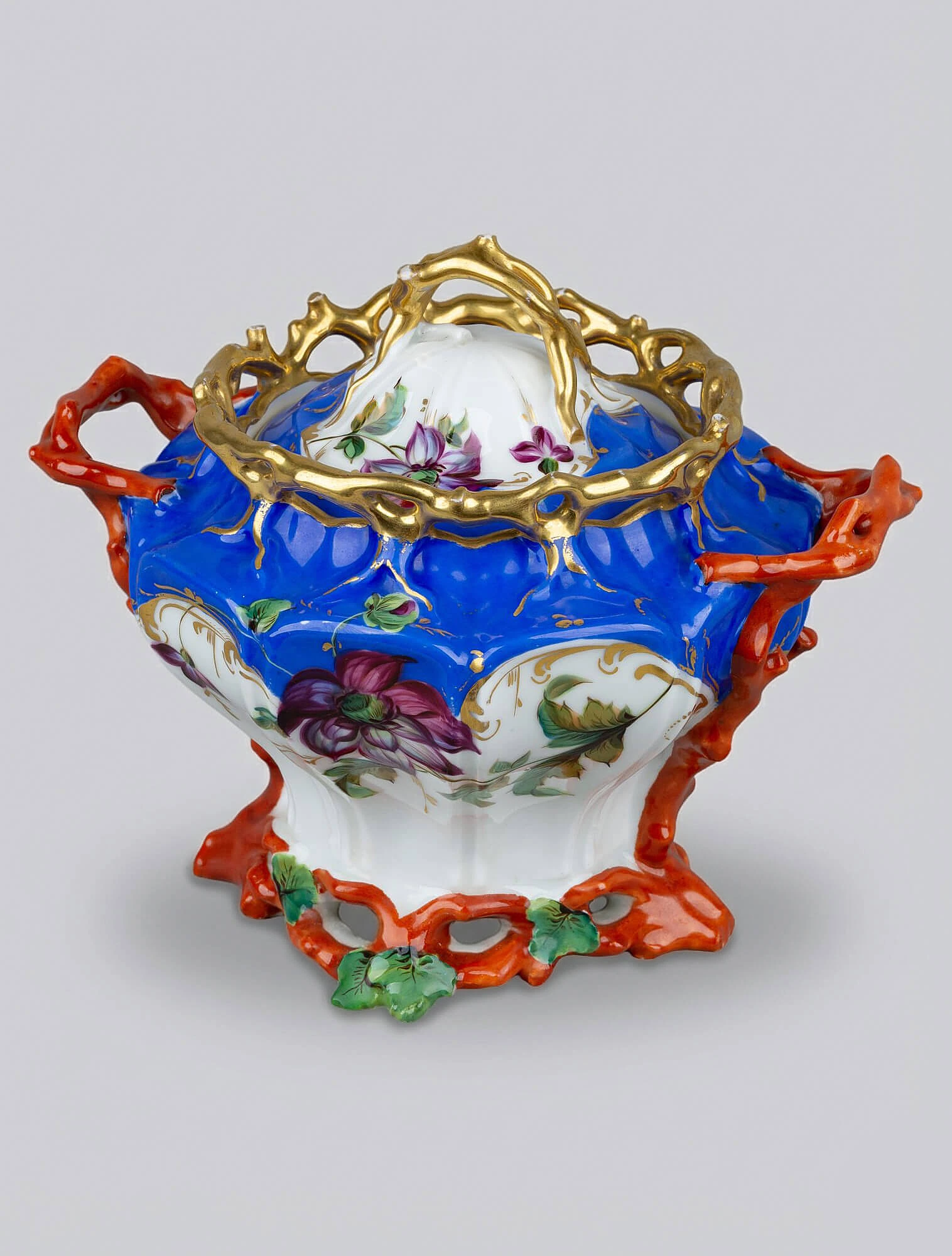 Мастера свободно работали с историческими стилями: в формах и декоре чувствуется влияние классицизма, рококо и других стилей. При этом элементы этих художественных направлений не копировали буквально, а переосмысляли с учётом современных тенденций и авторского видения. В оформлении часто использовались лепные детали, медальоны, цветочные гирлянды, сложный орнамент — фарфор выглядел парадным, но при этом не перегруженным декором.