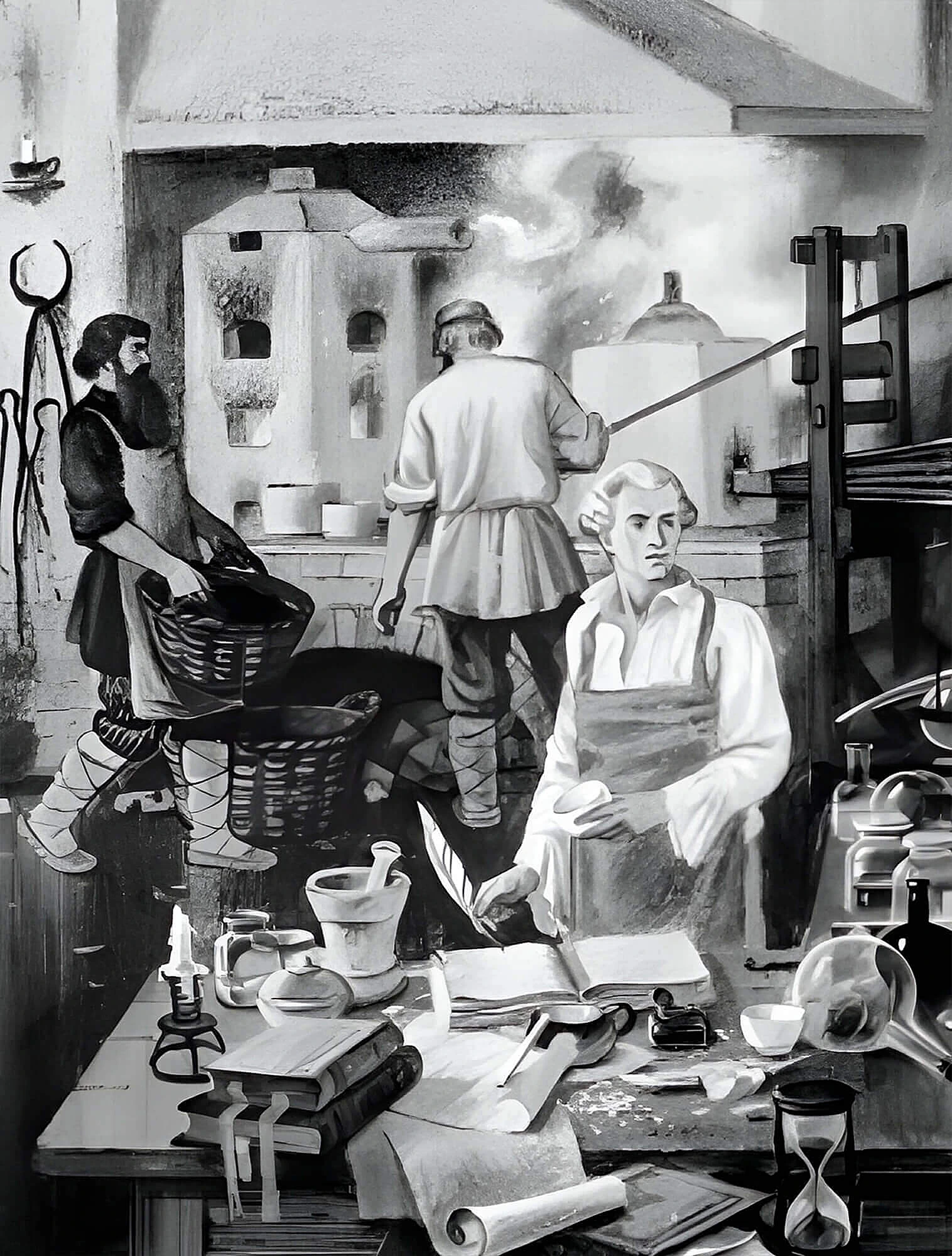 В 1746 году Виноградов получил первые удачные образцы фарфора. В его составе были гжельские глины, кварц и алебастр. Алебастр в этом рецепте работал как «связка» при обжиге — он плавился и помогал соединять компоненты в плотную массу.