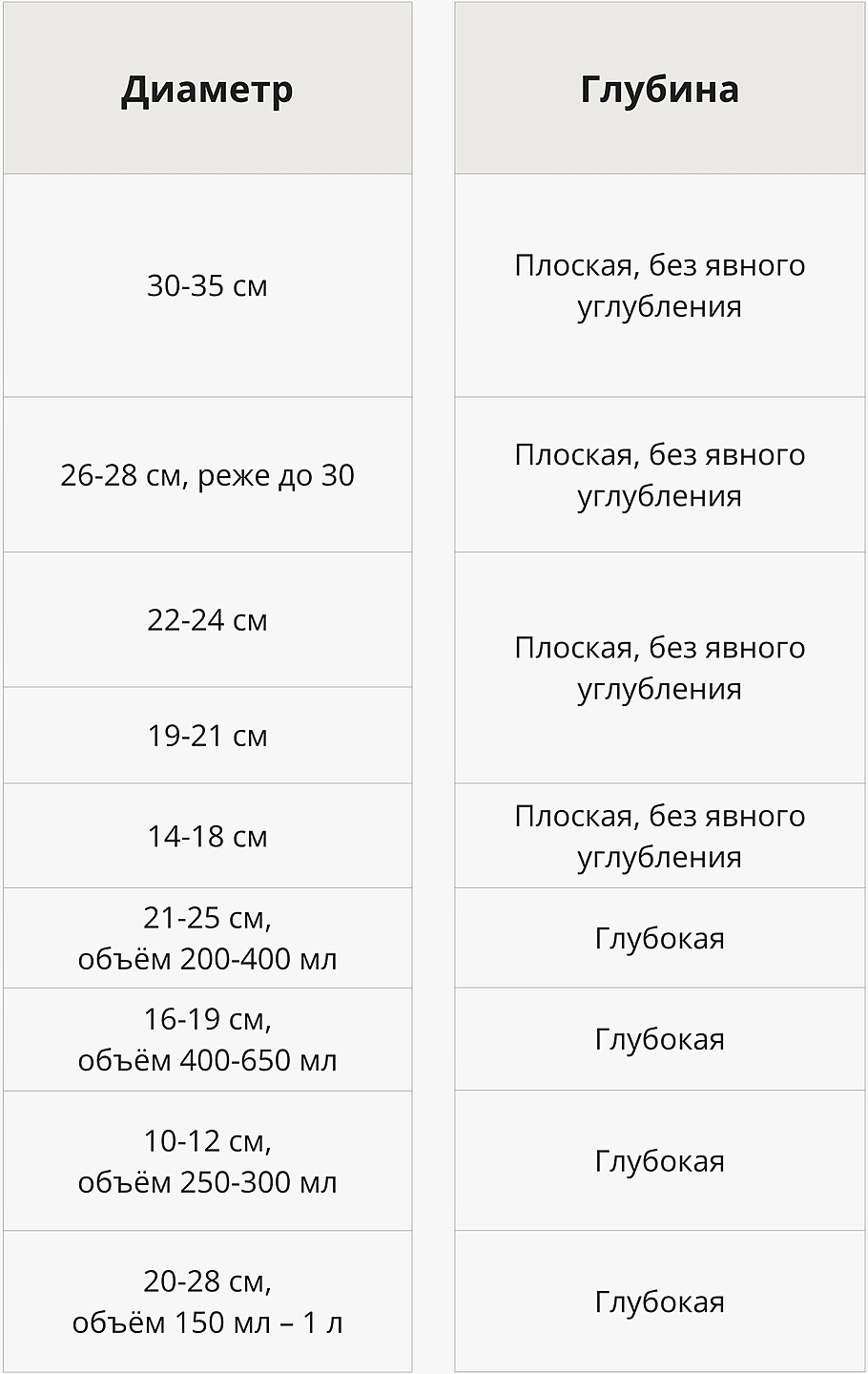 Виды глубоких тарелок