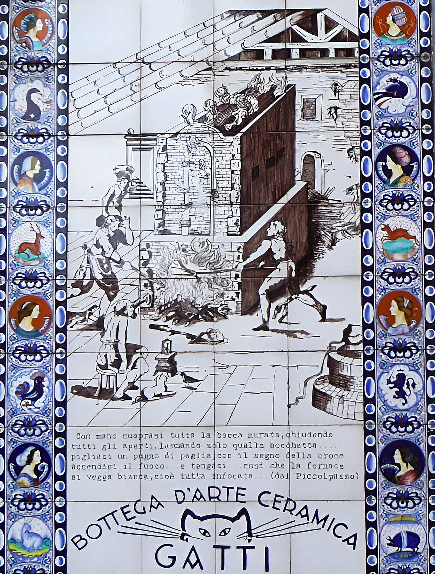 Мастера майолики обжигали посуду дважды. После первого обжига предмету давали время остыть, а затем окунали в чан с глазурью. После чего изделие расписывали водяными красками и повторно отправляли в печь. Важное для того времени новшество в том, что итальянцы использовали оловянную глазурь — плотную, белого цвета. Она скрывала под собой естественный цвет глины и создавала идеальный фон для росписи.
