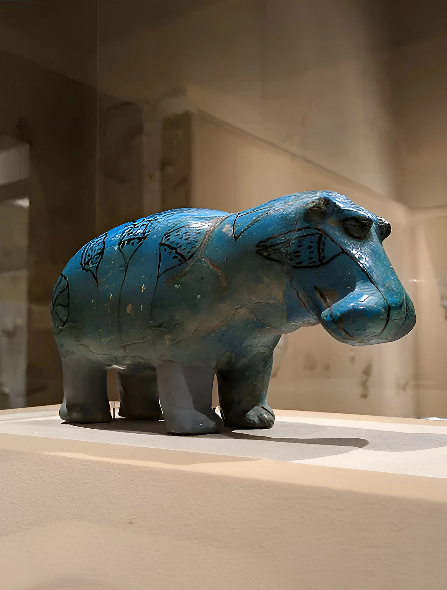 Статуэтка бегемота из голубого фаянса — неофициальный маскот Метрополитен-музея в Нью-Йорке. Сотрудники музея дали ему имя Уильям. Бегемота обнаружили в 1910 году в гробнице древнеегипетского государственного чиновника по имени Сенби. Возраст Уильяма — около 4 тысяч лет.