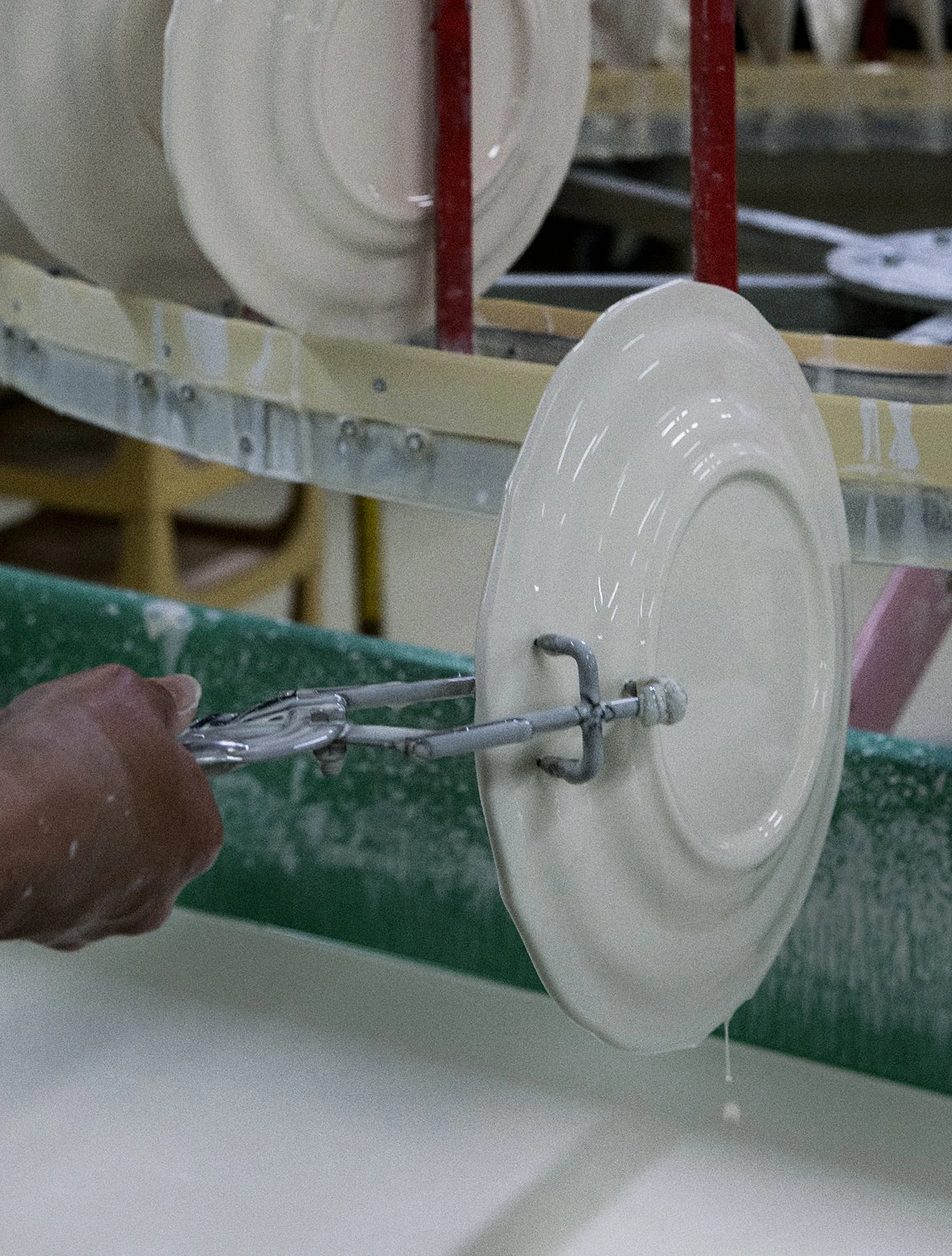 После замешивания «теста» и придания формы заготовку отправляют на первый обжиг. Чаще всего он проходит при температуре 1145 градусов. Затем изделие покрывают глазурью и снова обжигают — обычно при 1045 градусах.