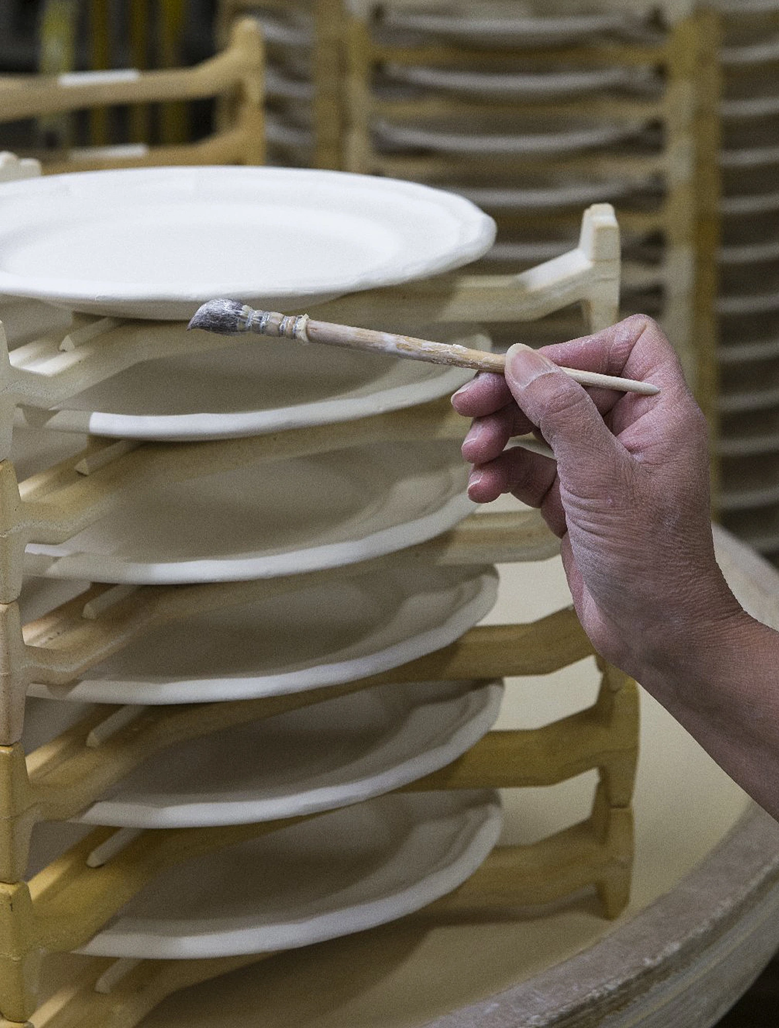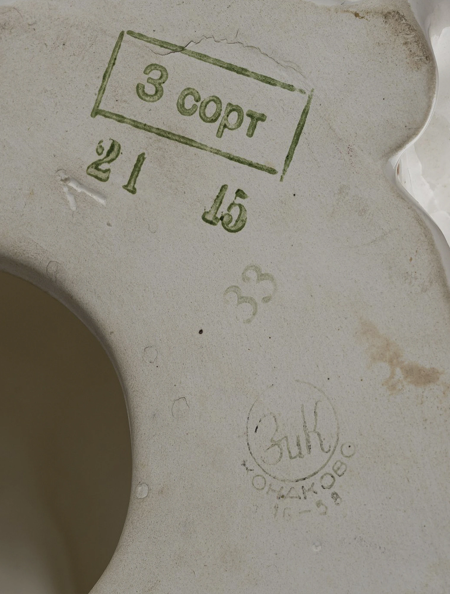 На оборотной стороне некоторых фаянсовых изделий можно заметить небольшие бугорки — это не брак, а особенность производства. Такие бугорки появляются в процессе обжига: посуду помещают в печь на специальных подпорках, и в местах соприкосновения остаются характерные отметины.