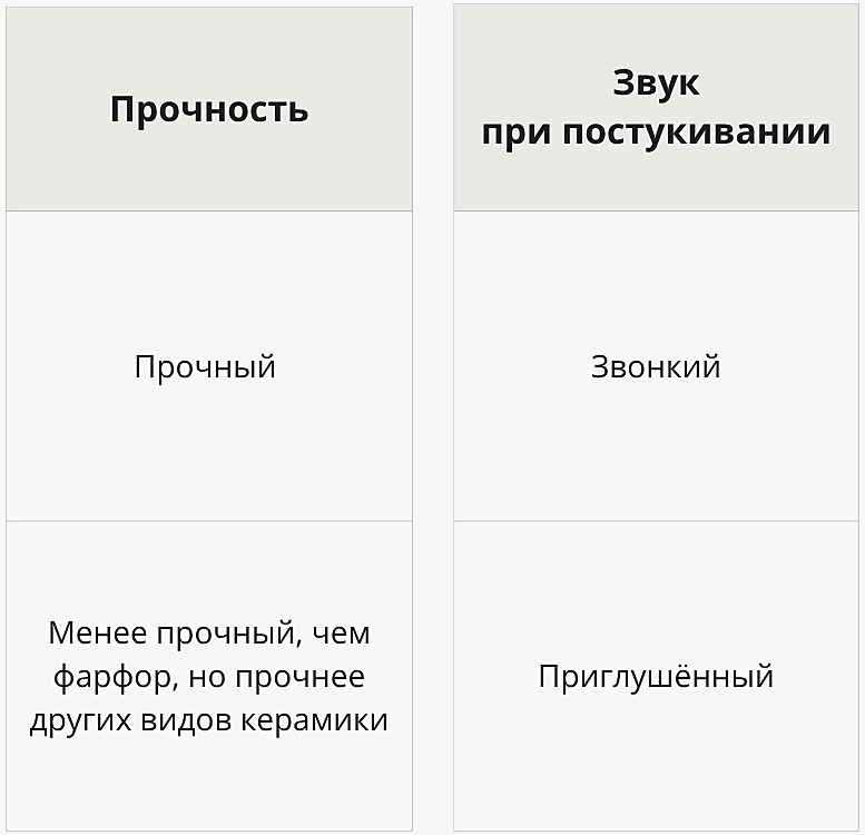 Температурой обжига. Фаянс обжигают при более низкой температуре, чем фарфор, поэтому он уступает ему по прочности. Но это не значит, что фаянс — хрупкий материал. Он всё так же устойчив для повседневного использования.