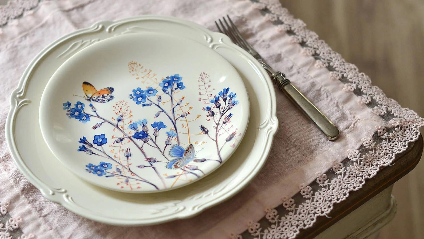 Если такой тарелки нет, не беда, можно воспользоваться круглой, но небольшой тарелкой 19-21 см. Её следует поставить либо слева от приборов, либо слева по диагонали от обеденной тарелки — куда обычно ставят пирожковую.
